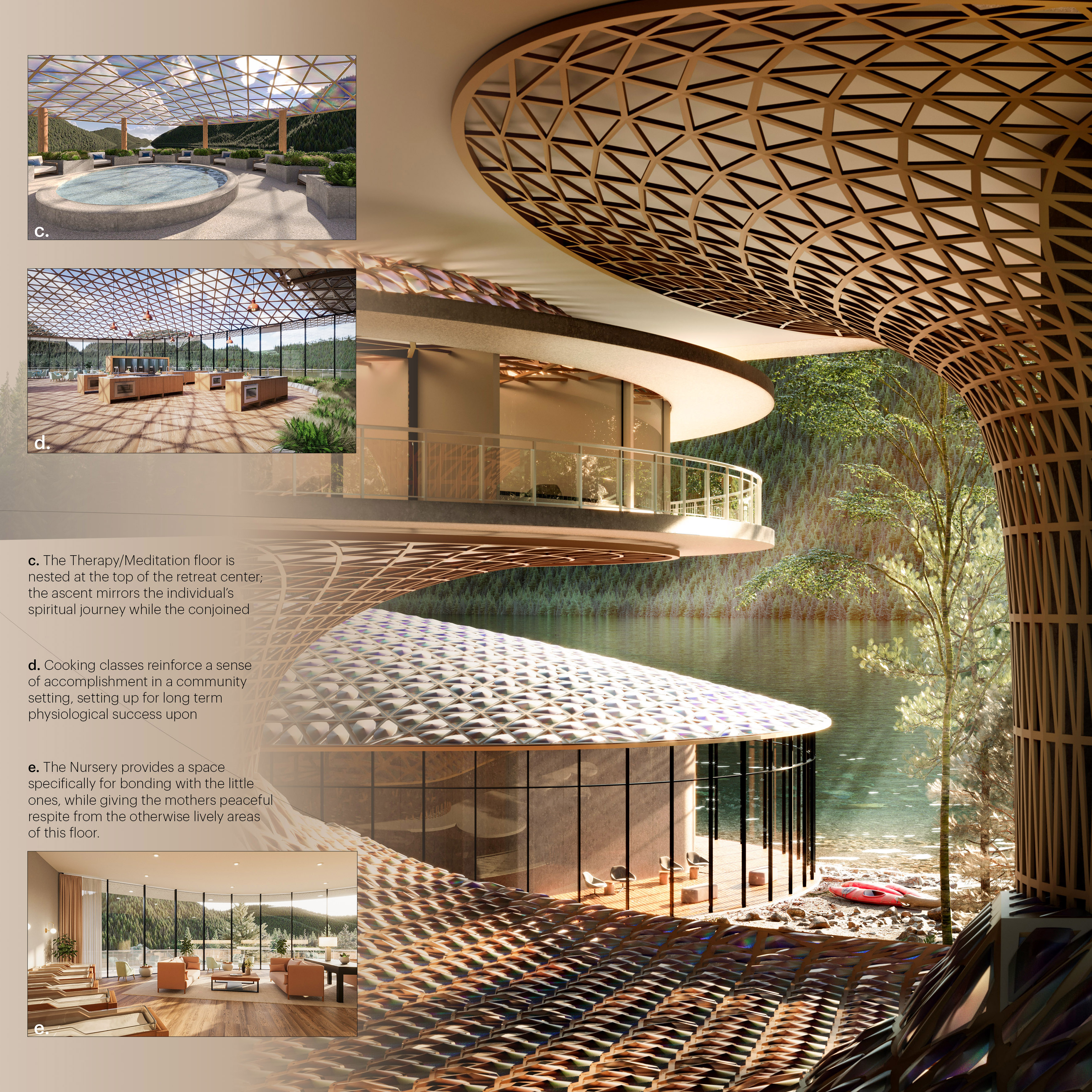 Cloudberry Haven is a concept we developed for the 2023 Retreat Center competition, which emphasized creating spaces for healing. Designed as a postnatal retreat center, Cloudberry Haven aims to provide a nurturing and supportive environment to help women overcome postpartum depression and facilitate their recovery. Our entry received an honorable mention in the competition.